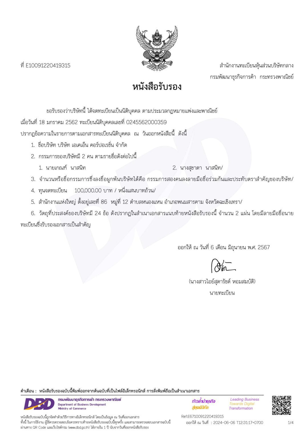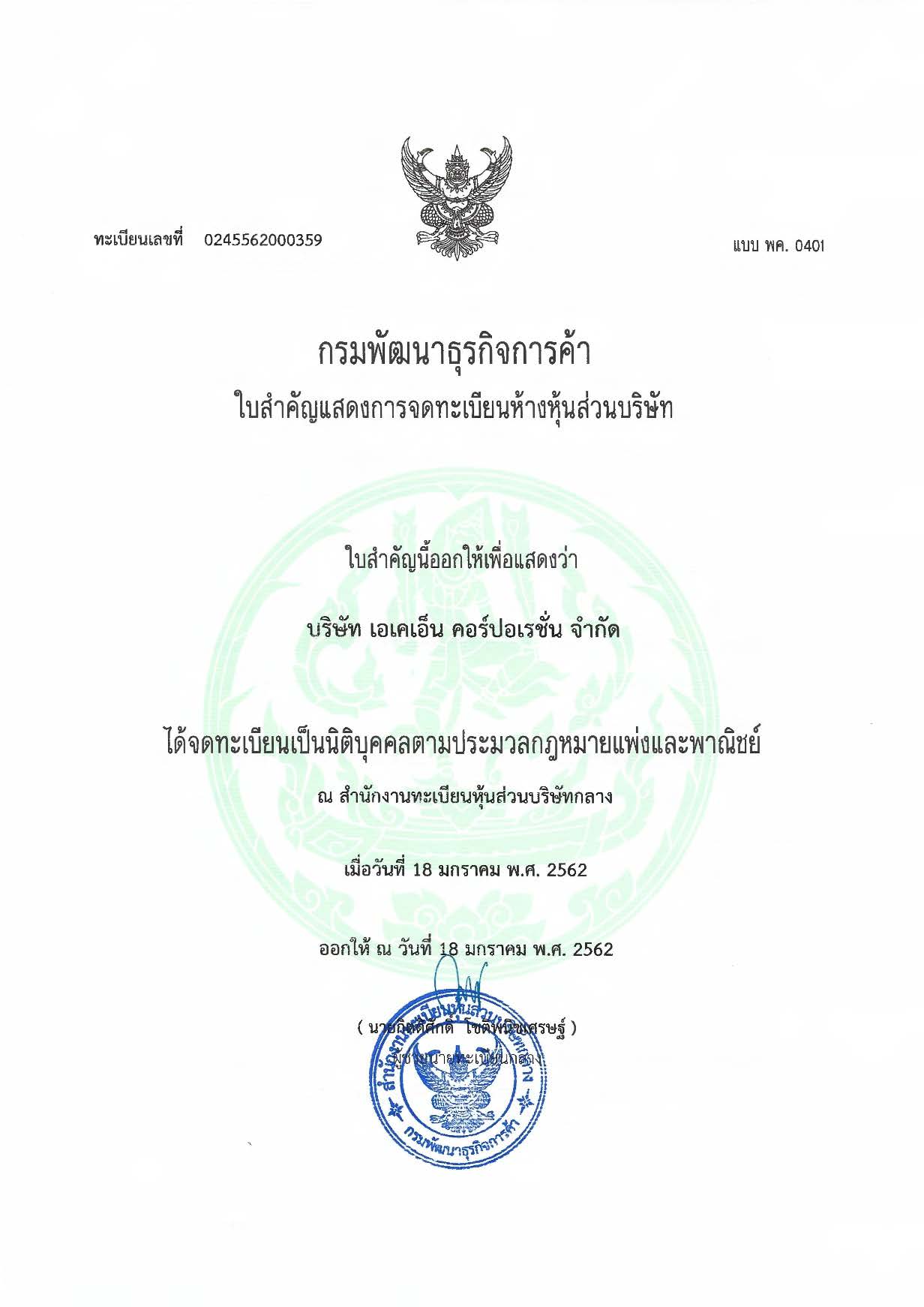 หนังสือรับรองบริษัทฯ
