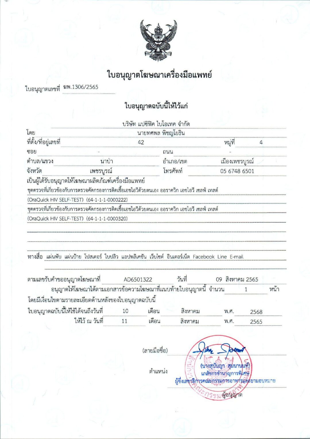 เอกสารการจดทะเบียน อย.